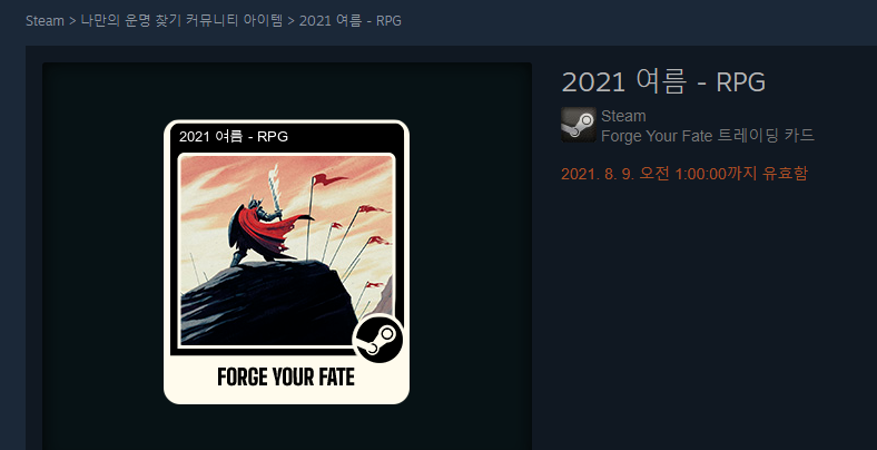 매일 한번씩 스토어 스크롤을 내려보면 중간쯤에 있는 대기열에서 무작위로 추천하는 게임 10개, 1열을 모두 보고 나면, 여름 세일 카드 1장을 받을 수 있습니다.