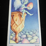 7. Six of Cups(컵의 7) - 유니버셜/페이/드래곤 타로안녕하세요. 타로 마스터 엘프리 입니다. 컵 7은 환영, 환상, 환각을 의미하고 나타냅니다. 앞에서도 여러번 이야기 했지만, 컵에는 물이 있어야 정상적인 감정을 뜻하는 것입니다. 물이 아닌, 특히 뱀이나 보석 같은 탐욕과 욕망을 나타내는 것들이 들어 있다는 것은 정말 환각에 빠진 것과 다름이 없습니다. 일곱개의 컵에는 보통 속물이라고 불릴만한 것들이 들어있고 그럼 것들에 마음이 팔려 제대로 현실을 보지 못하는 경우라고 볼 수 있습니다. 이럴 때는 헛된 꿈에서 현실을 똑바로 볼 수 있도록 조언이 필요한 경우가 많습니다. 이미지 리딩 유니버셜 웨이트 타로구름 속에 일곱개의 컵이 있습니다. 각 컵에는 뱀, 용, 월계수, 보석, 성, 얼굴, 성자..