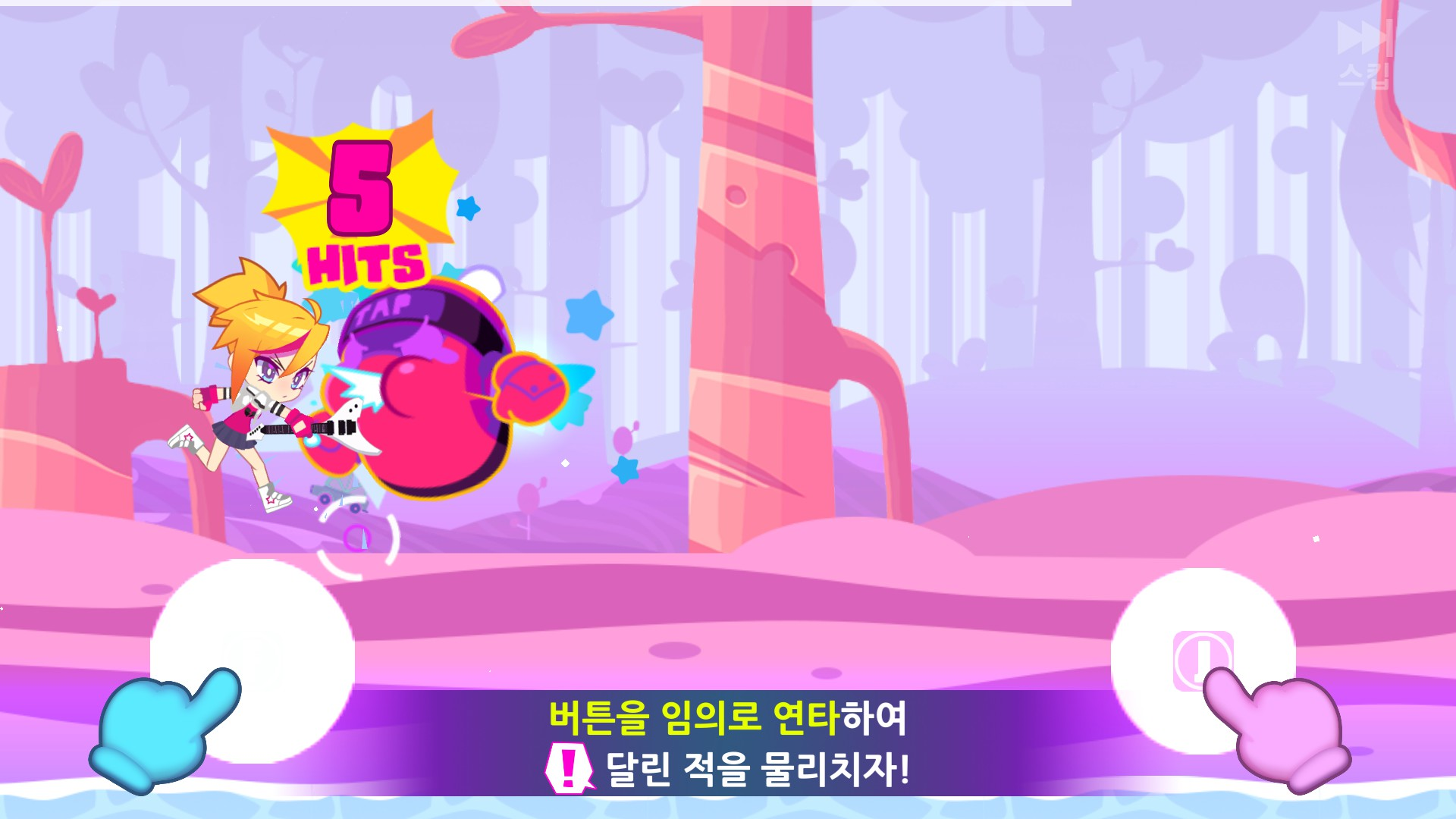 뮤즈 대쉬에서는 리듬게임으로 보지 않고, 액션게임으로 적이 오면 잡거나 피한다는 생각으로 플레이를 했더니, 박자를 생각하지 않아도 플레이가 가능해졌습니다.