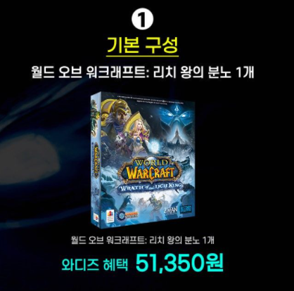 가장 평범한 기본 구성은 51,350원 입니다. 월드 오브 워크래프트 : 리치 왕의 분노 1개를 받을 수 있습니다.