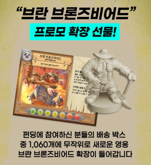 펀딩에 참여하신 분들에게 무작위 1,060개의 배송박스에 새로운 영웅 브란 브론즈비어드 확장이 들어갑니다. 랜덤 추첨방식이라 많이 아쉽네요.