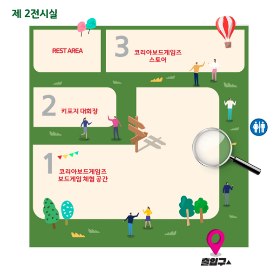 총 3곳의 전시실에서 행사가 진행되며 국내 보드게임 최대업체인 코리아보드게임즈가 지난번에 이어 이번에도 2전시실을 혼자 모두 사용하게 되었네요.